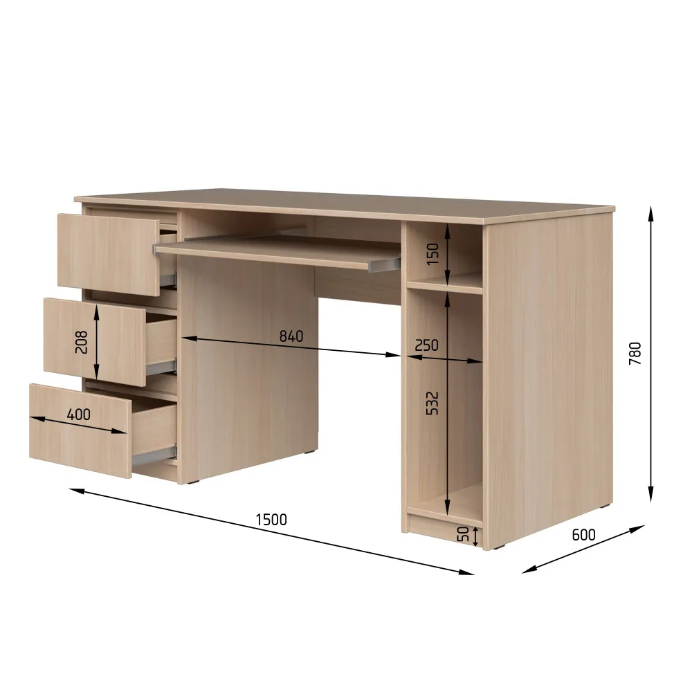 Характеристики Стол компьютерный СК2 3Я 780х1500х600 мм ДСП Серый Графит