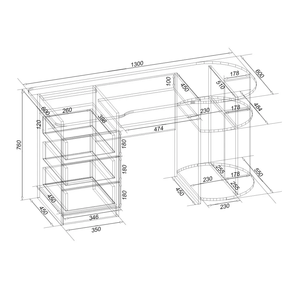Характеристики Стол письменный СКП-2 №11, Самоа Дымчатый, 1300/600/760
