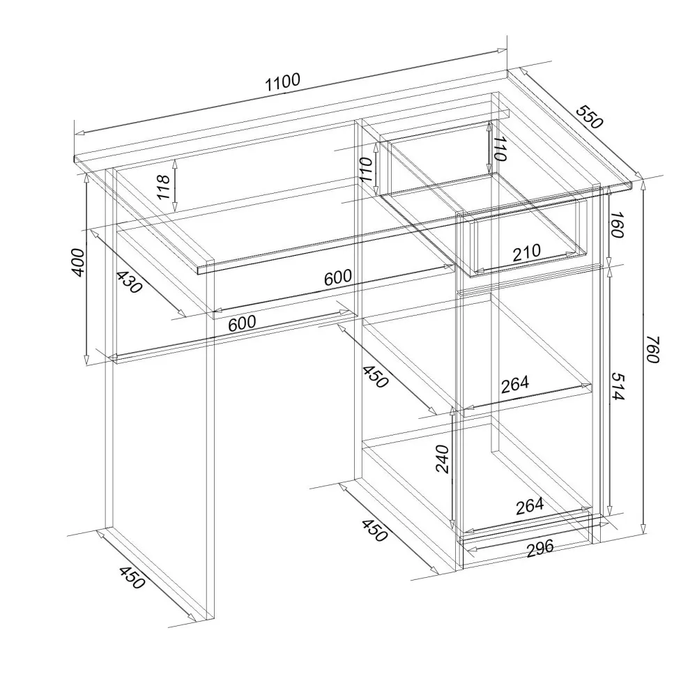 Характеристики Стол письменный СП-1 №10, Белый, 1100/550/760