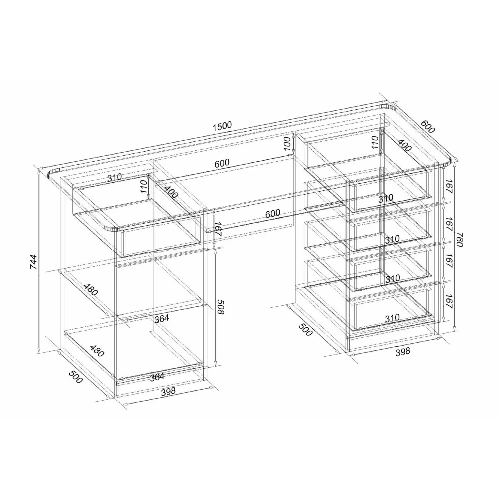 | Глубина, мм600 | Высота, мм760 | Ширина, мм1500 |