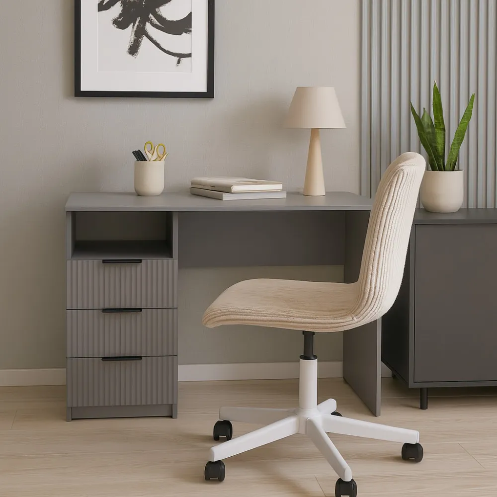 Стол письменный СП1 3Я 750х1100х500 мм корпус ДСП Серая Мышка фасад МДФ краска RAL7004 (Серый) фрезерование Плаше Гросс