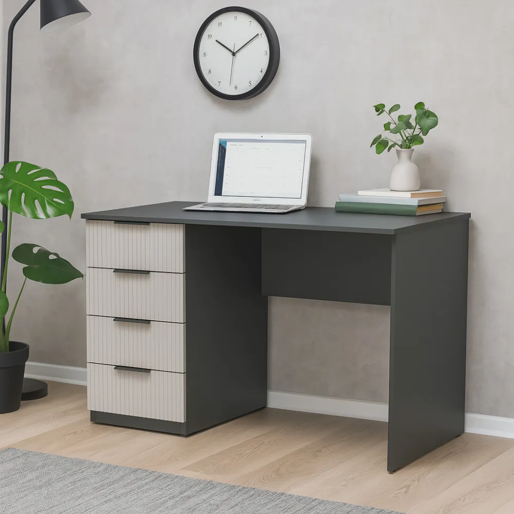 Стол письменный СП2 4Я 750х1300х600 мм корпус ДСП Серый Графит фасад МДФ краска RAL9001 (Свет-беж) фрезерование Плаше Гросс