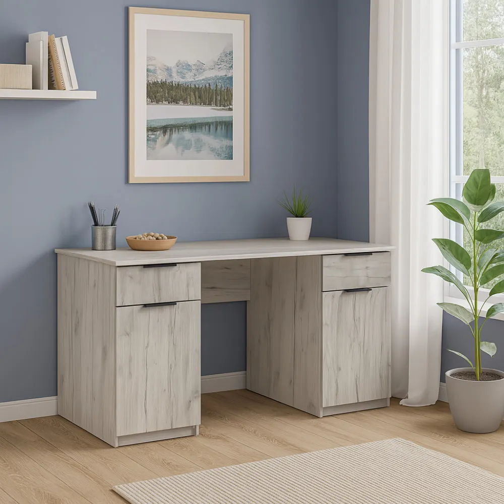 Характеристики Стол письменный СП4 2Я2Д 750х1400х500 мм ДСП Дуб Крафт Белый