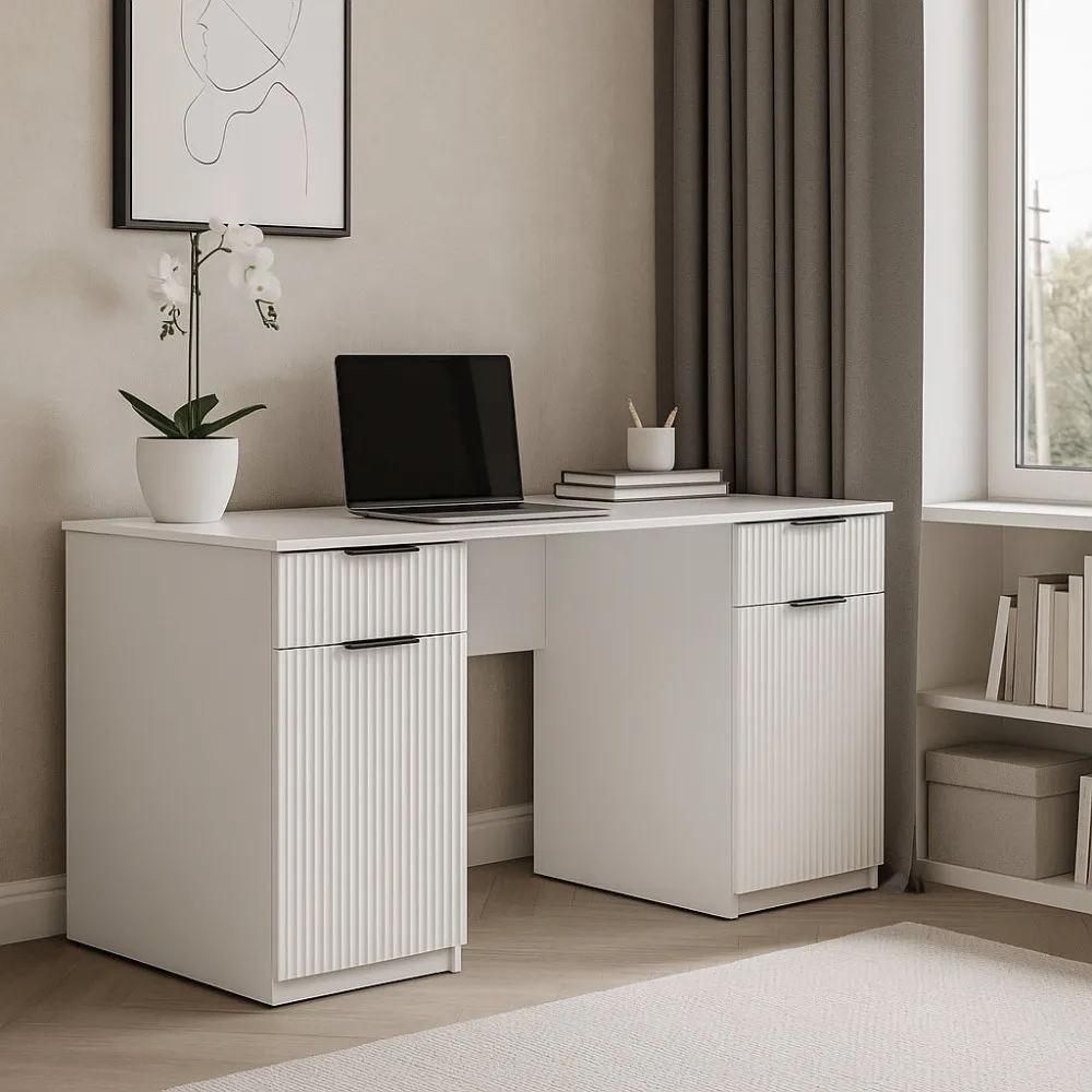 Стол письменный СП4 2Я2Д 750х1400х500 мм корпус ДСП Белый фасад МДФ краска RAL9003 (Белый) фрезерование Плаше Гросс