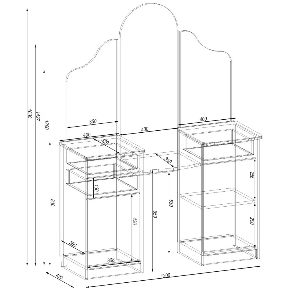 Характеристики Стол туалетный Трюмо Диана, Дуб Крафт Белый, 1200/420/1630