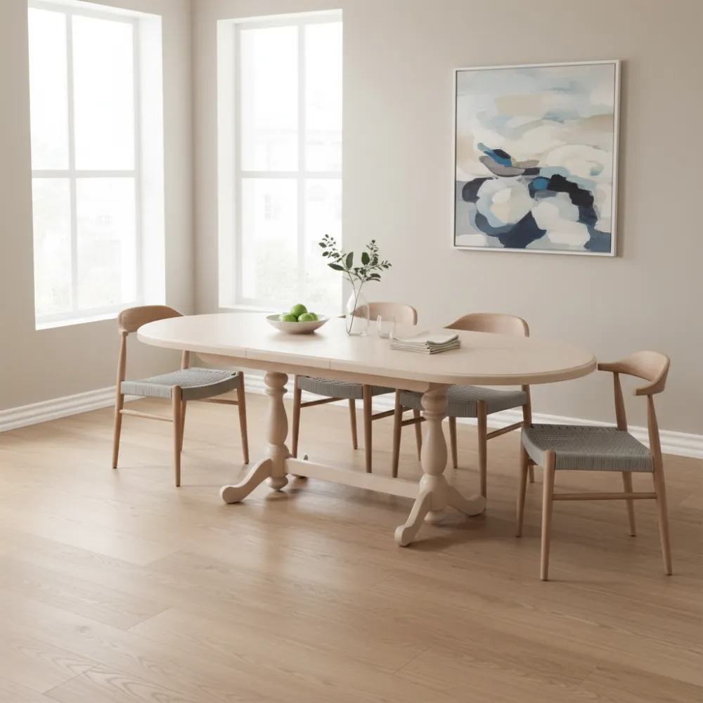 Раскладной механизм: Удобная система трансформации позволяет быстро увеличить полезную площадь стола, делая его отличным решением для приёма гостей или семейных обедов.