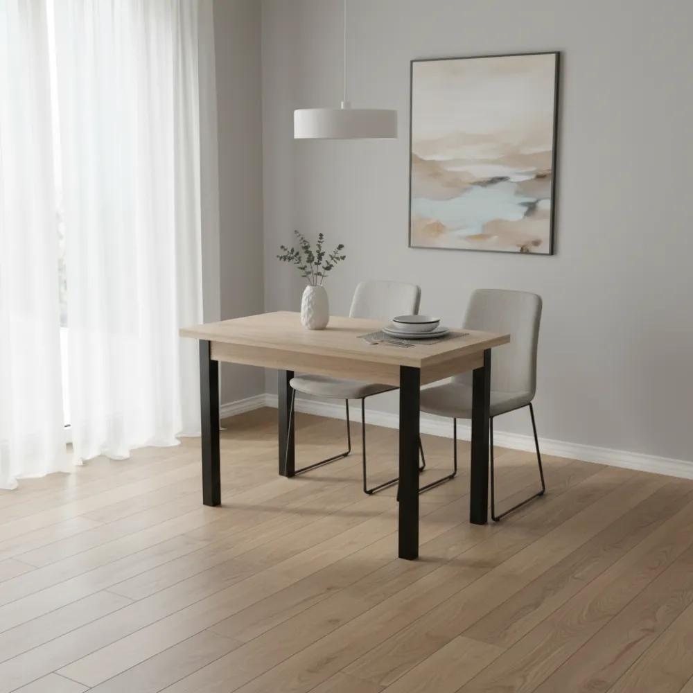 Раскладной механизм: Удобная система трансформации позволяет быстро увеличить полезную площадь стола, делая его отличным решением для приёма гостей или семейных обедов.