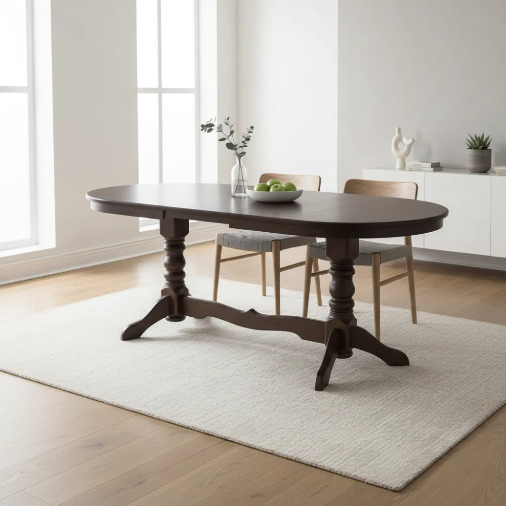 Раскладной механизм: Удобная система трансформации позволяет быстро увеличить полезную площадь стола, делая его отличным решением для приёма гостей или семейных обедов.