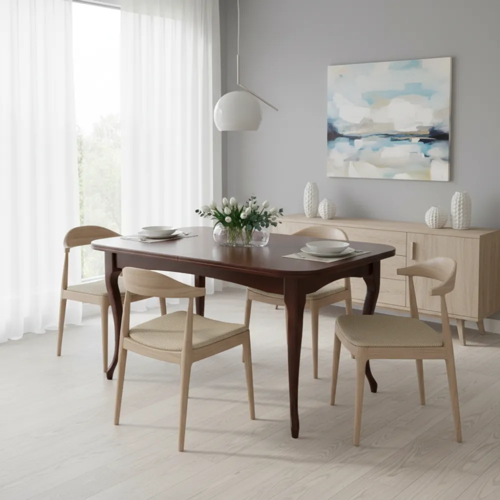 Раскладной механизм: Удобная система трансформации позволяет быстро увеличить полезную площадь стола, делая его отличным решением для приёма гостей или семейных обедов.