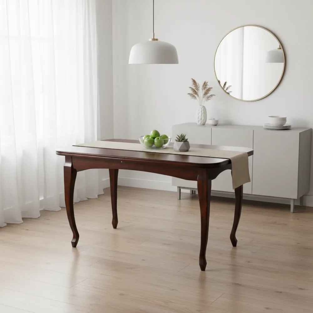 Раскладной механизм: Удобная система трансформации позволяет быстро увеличить полезную площадь стола, делая его отличным решением для приёма гостей или семейных обедов.