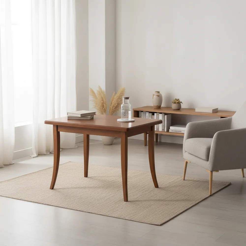 Раскладной механизм: Удобная система трансформации позволяет быстро увеличить полезную площадь стола, делая его отличным решением для приёма гостей или семейных обедов.