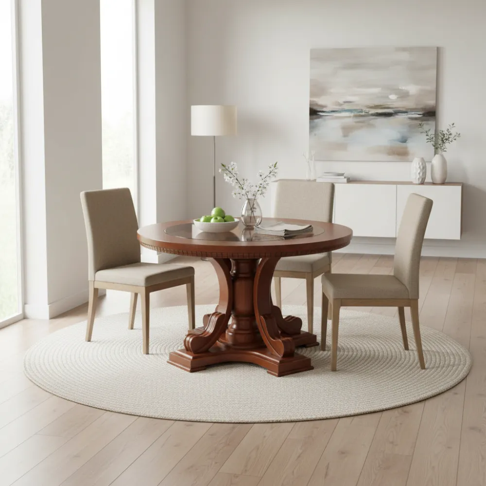 Раскладной механизм: Удобная система трансформации позволяет быстро увеличить полезную площадь стола, делая его отличным решением для приёма гостей или семейных обедов.