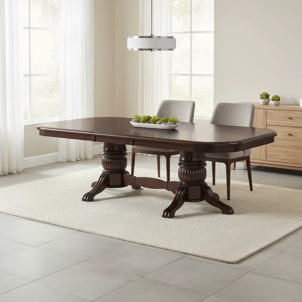 Раскладной механизм: Удобная система трансформации позволяет быстро увеличить полезную площадь стола, делая его отличным решением для приёма гостей или семейных обедов.