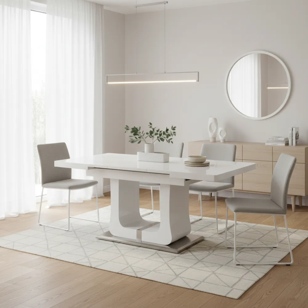 Раскладной механизм: Удобная система трансформации позволяет быстро увеличить полезную площадь стола, делая его отличным решением для приёма гостей или семейных обедов.