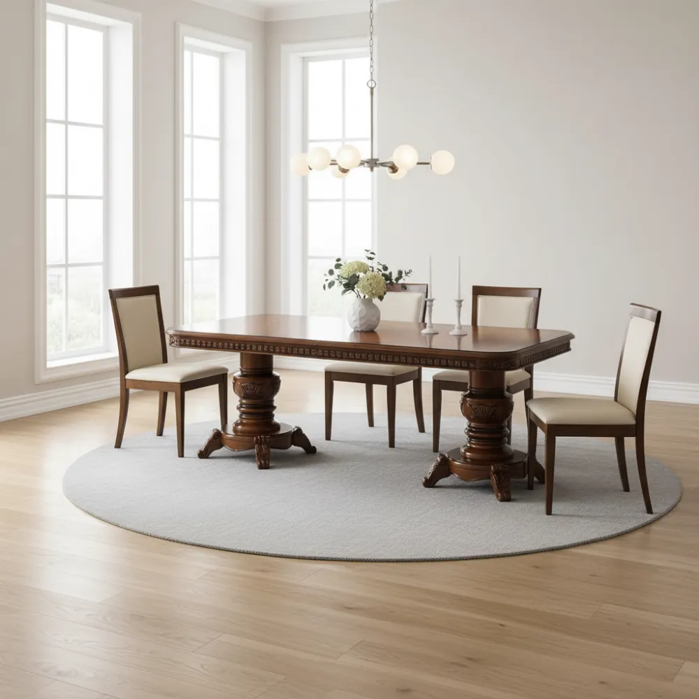 Раскладной механизм: Удобная система трансформации позволяет быстро увеличить полезную площадь стола, делая его отличным решением для приёма гостей или семейных обедов.