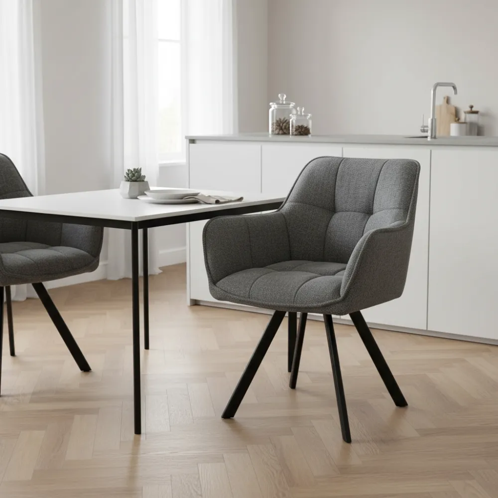 Стул M-235 – это сочетание современного дизайна, комфорта и надежности. Обитый фактурной тканью в стильном оттенке графита, он имеет приятную на ощупь поверхность и выглядит солидно и сдержанно. Благодаря широкому сидению и комфортным подлокотникам, модель обеспечивает удобную посадку как для обеда, так и отдыха.