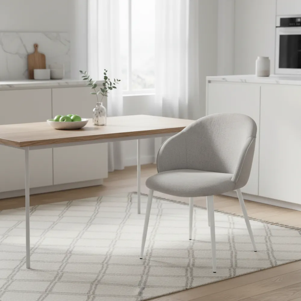 Вместе эти цвета создают выразительный визуальный баланс: темная, текстурная обивка привлекает внимание, а светлые металлические ножки уравновешивают композицию. Такой дуэт выглядит особенно выигрышно в современных, скандинавских или минималистических интерьерах, где ценится лаконичность и продуманная палитра. Этот стул станет стильным акцентом вашего пространства, сочетая комфорт, надежность и визуальную легкость.