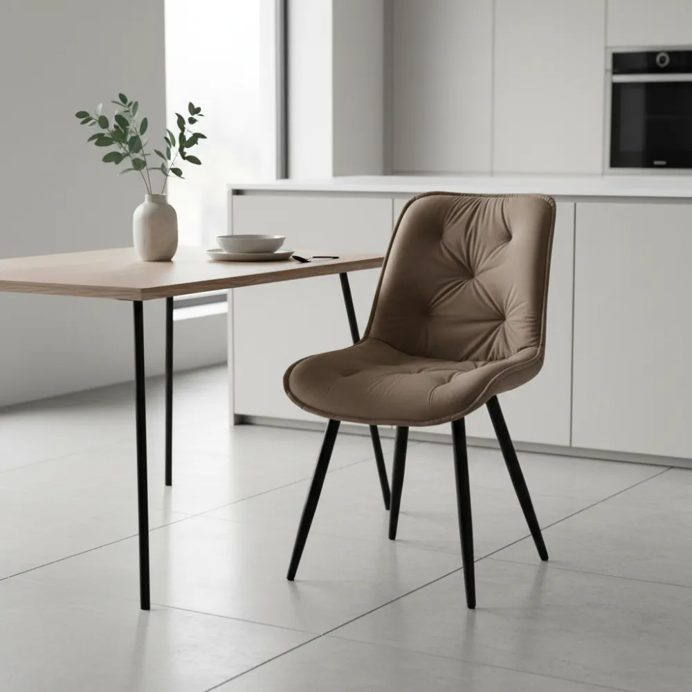 Черный каркас, в свою очередь, подчеркивает стильную сдержанность модели, создавая элегантный контраст с мягким капучино. Такой стул станет отличным акцентом в любом интерьере, придавая в него теплоту и гармонию. Идеальный выбор для кухни, столовой или гостиной, он сочетает в себе стиль и практичность.