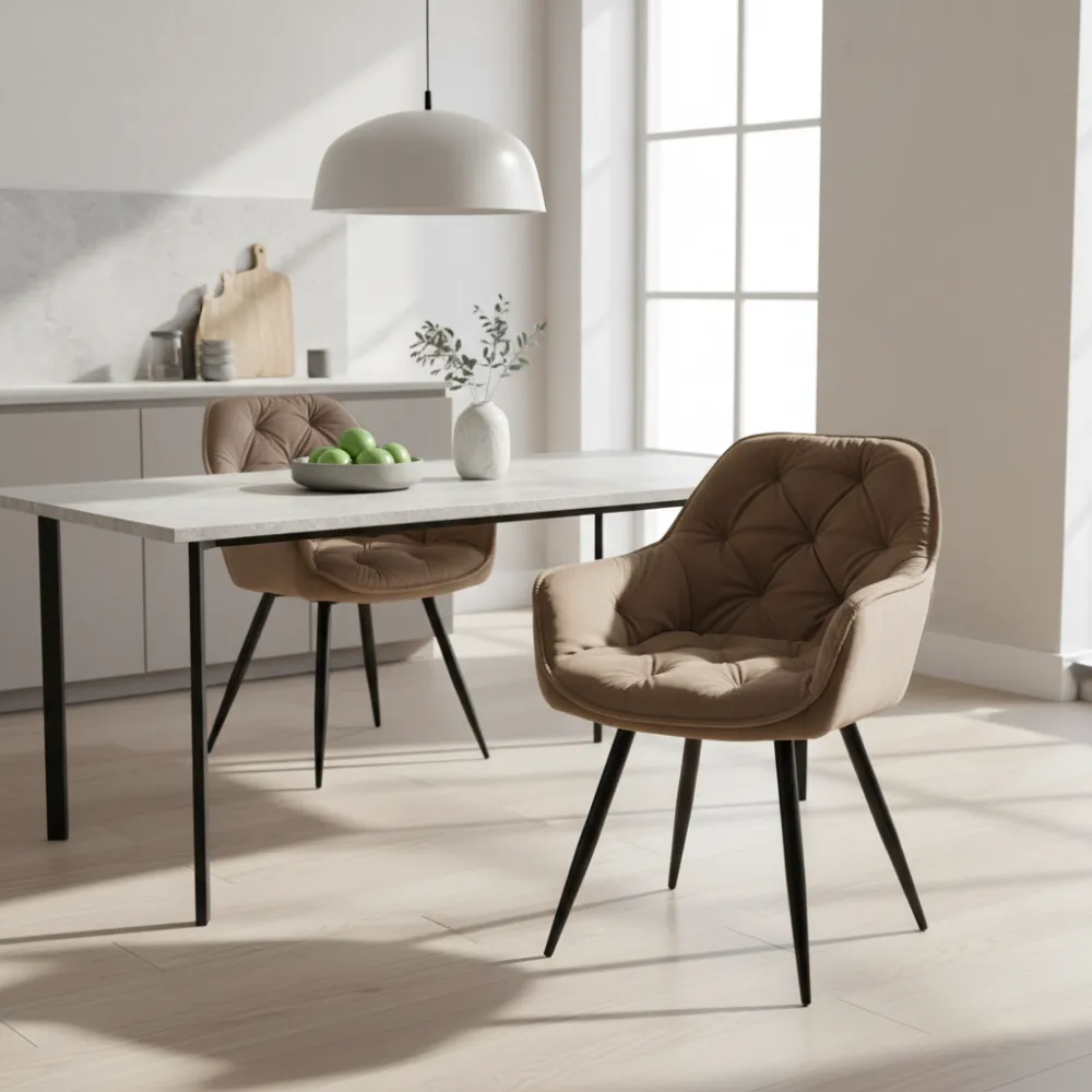 Стул M-65 капучино велюр + черный – это изысканное сочетание стильного дизайна, практичности и современных материалов. Его нежный оттенок капучино в обивке из мягкого велюра наполняет пространство теплом и уютом, создавая атмосферу гармонии. Благодаря текстуре велюра стул не только выглядит роскошно, но и приятно на ощупь, обеспечивая комфорт даже во время длительного сидения. Особое внимание привлекает продуманная эргономика. Широкое сиденье и глубина посадки идеально подходят для отдыха или работы, а удобные подлокотники придают еще большее удобство. Гармония пропорций и высота сиденья позволяют стулу легко сочетаться с разными столами, делая его универсальным выбором для любого интерьера.