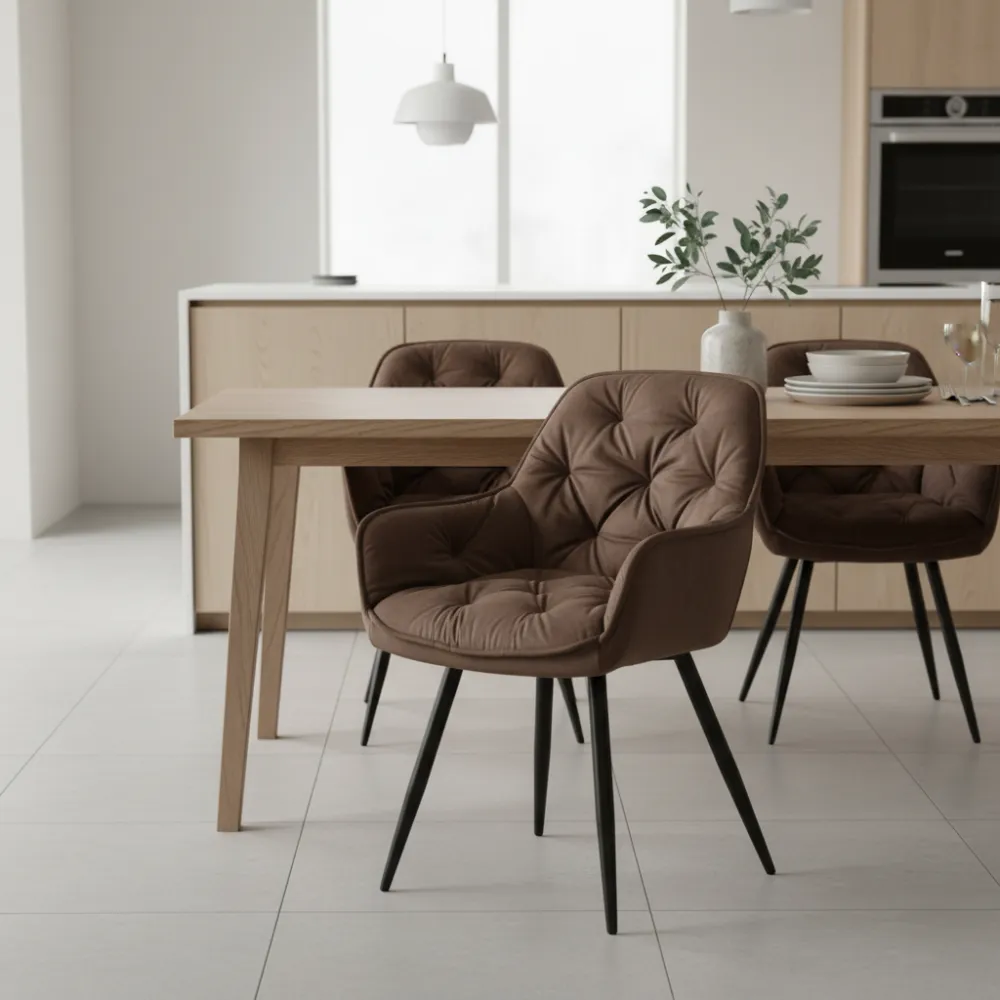 Стул M-65 коричневый велюр + черный – это элегантное сочетание стиля и комфорта, которое идеально подходит для создания уютного и современного интерьера. Его коричневый велюр дарит ощущение тепла и роскоши, придавая простору глубины и утонченности. Мягкая текстура обивки не только приятна на ощупь, но и способна менять вид в зависимости от освещения, создавая особую атмосферу.