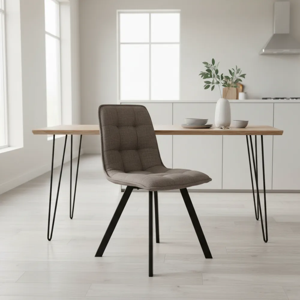 Стул M-70 в цвете мокко сочетает элегантный вид с практичностью. Его обивка из ткани имеет теплый, насыщенный оттенок мокко, придающий стулу уютный и современный вид. Цвет мокко – это теплый и глубокий коричнево-бежевый, создающий атмосферу комфорта и стиля в любом интерьере. Он легко интегрируется в различные цветовые схемы и дизайны, от классических до современных. Ткань устойчива к износу и легко чистится, что делает стул долговечным и простым в уходе. Черная металлическая основа обеспечивает стулу прочность и стабильность, создавая современный контраст с цветом мокко. Этот контраст подчеркивает стильный и сбалансированный дизайн стула.