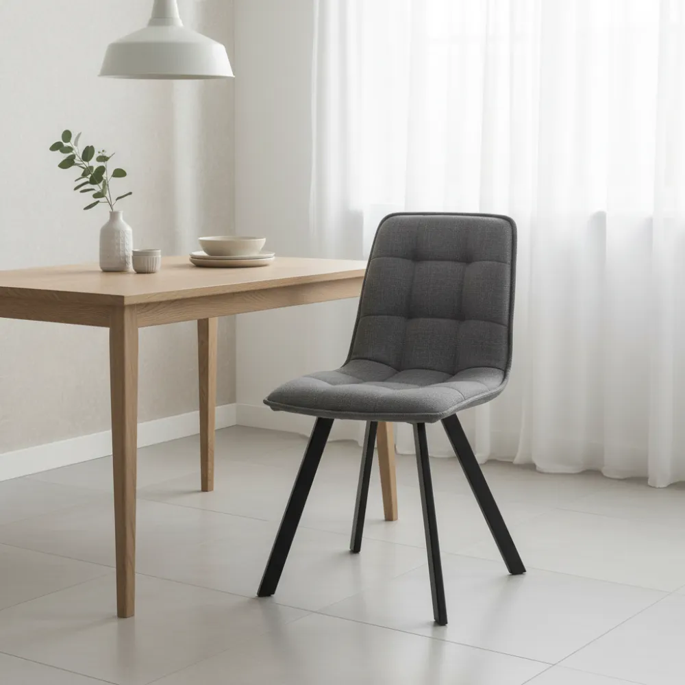 Черная металлическая основа придает стулу современный вид и обеспечивает его стабильность. Контраст между серым сиденьем и черными ножками создает стильный и гармоничный образ.