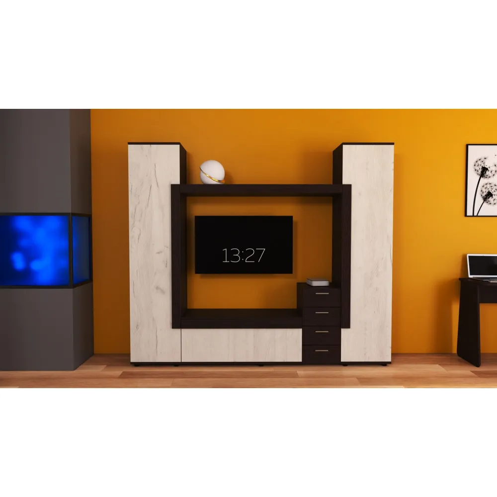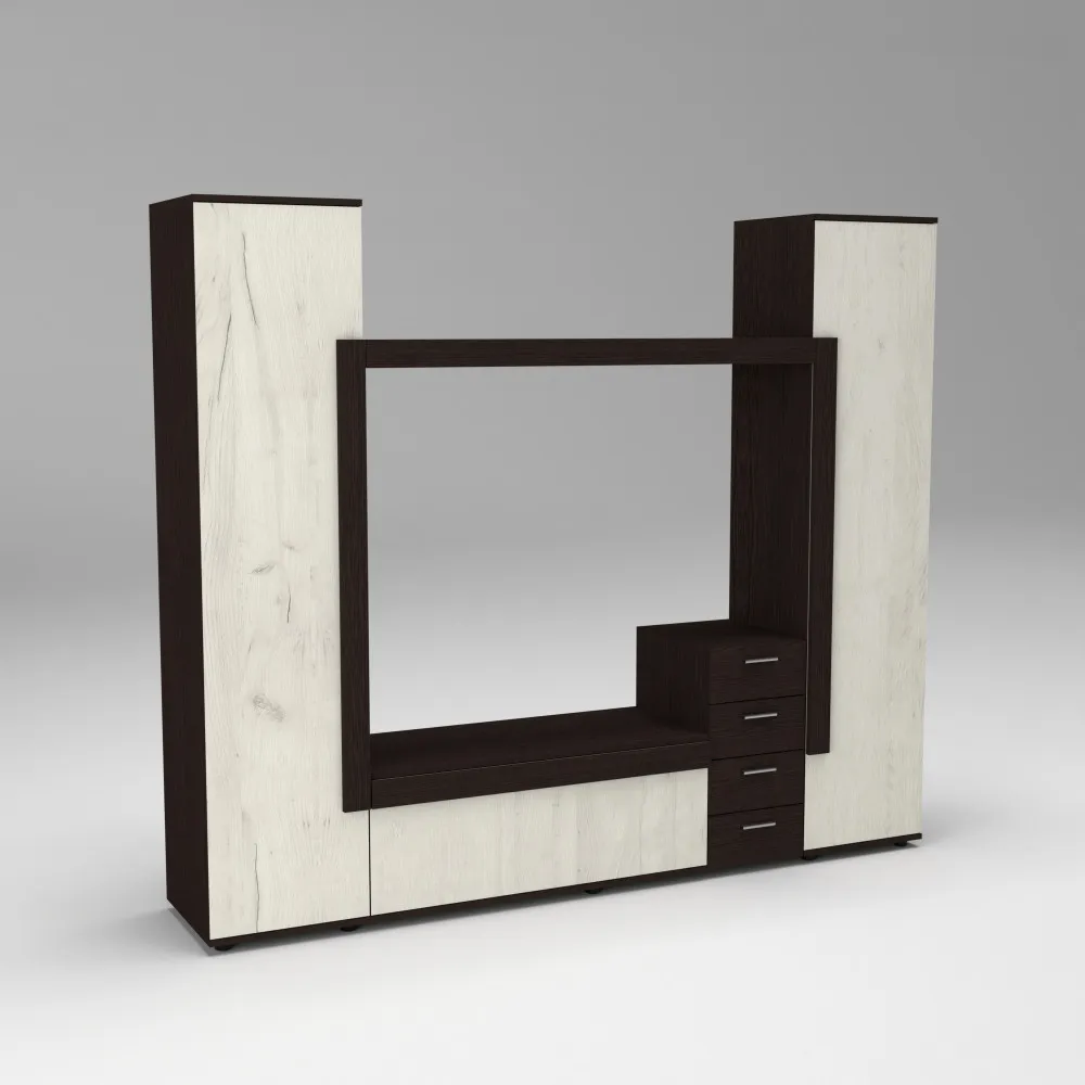Характеристики Стенка в гостиную под ТВ Эхо-2, Дуб Крафт Белый/Венге Магия, 2160х420х1850