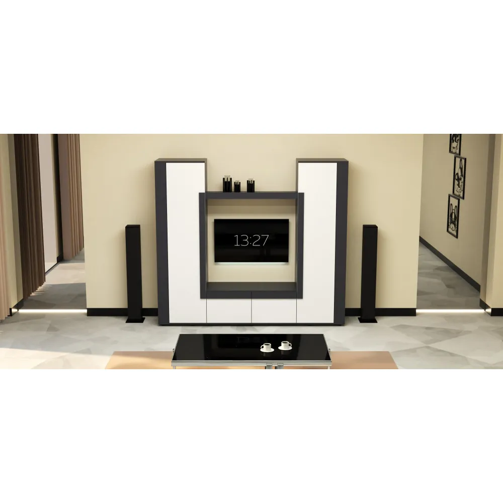 Характеристики Стенка в гостиную под ТВ Эхо-4, Белый+Антрацит, 2080х420х1850