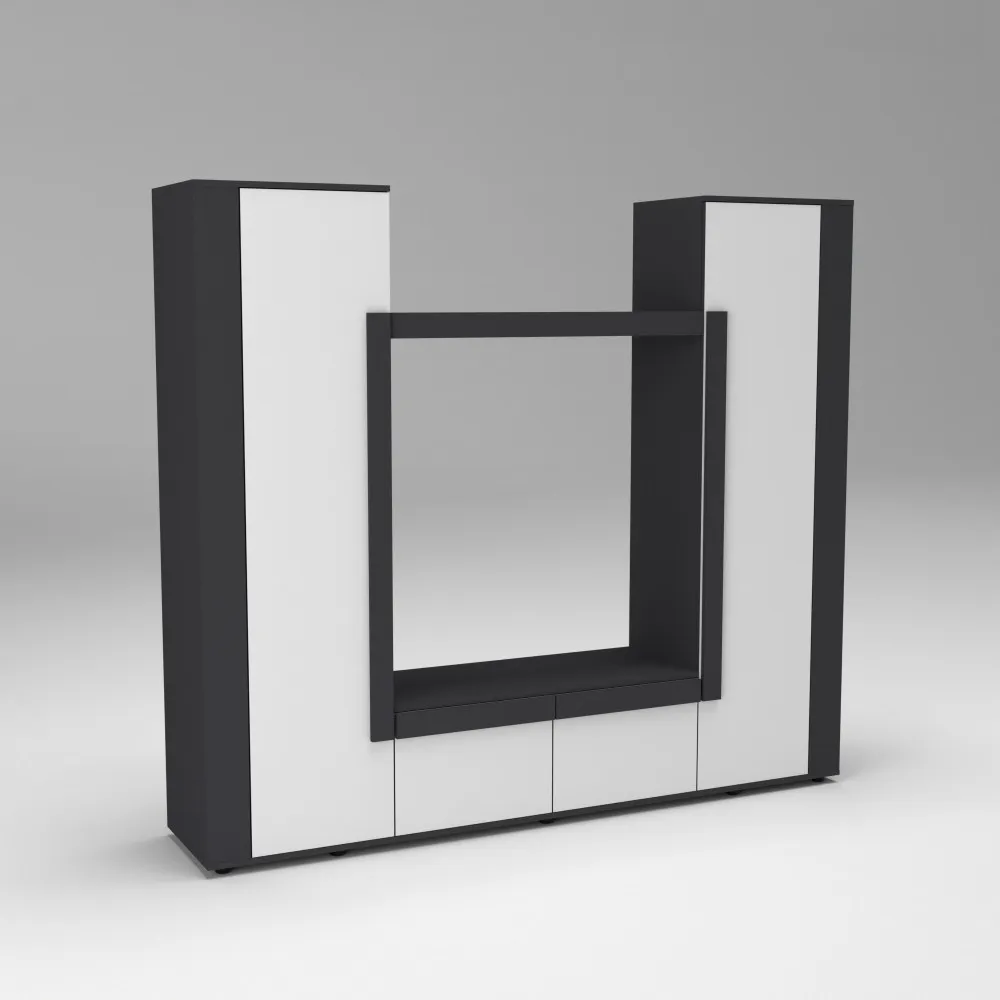 Стенка в гостиную под ТВ Эхо-4, Белый+Антрацит, 2080х420х1850