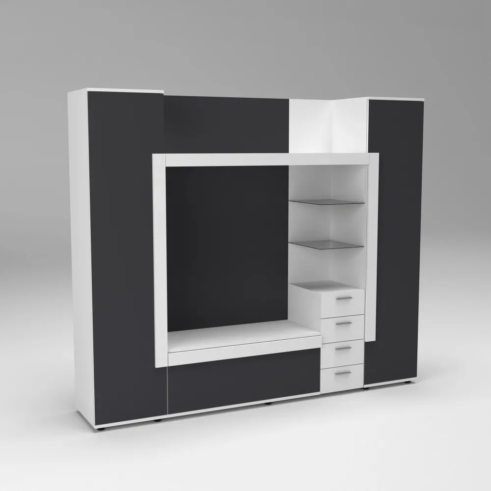 Стенка в гостиную под ТВ Exo-1, Белый+Антрацит, 2160х420х1850