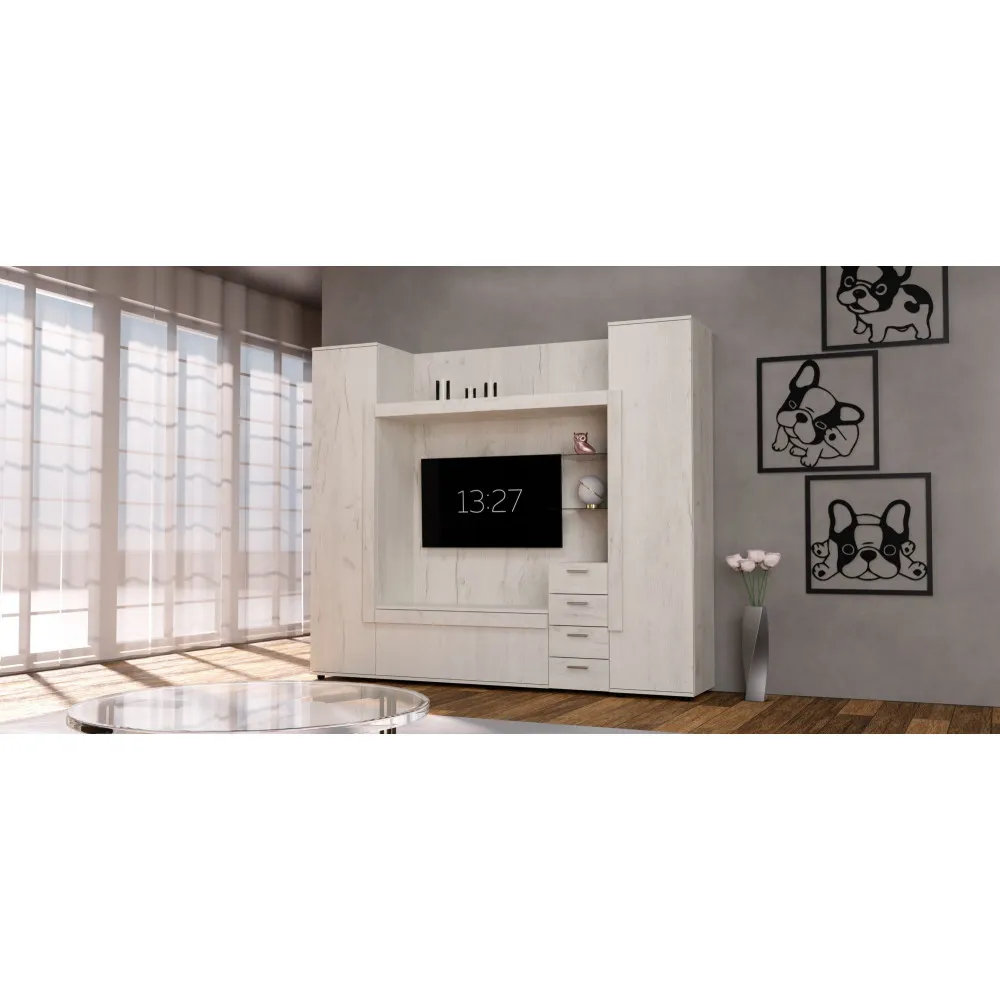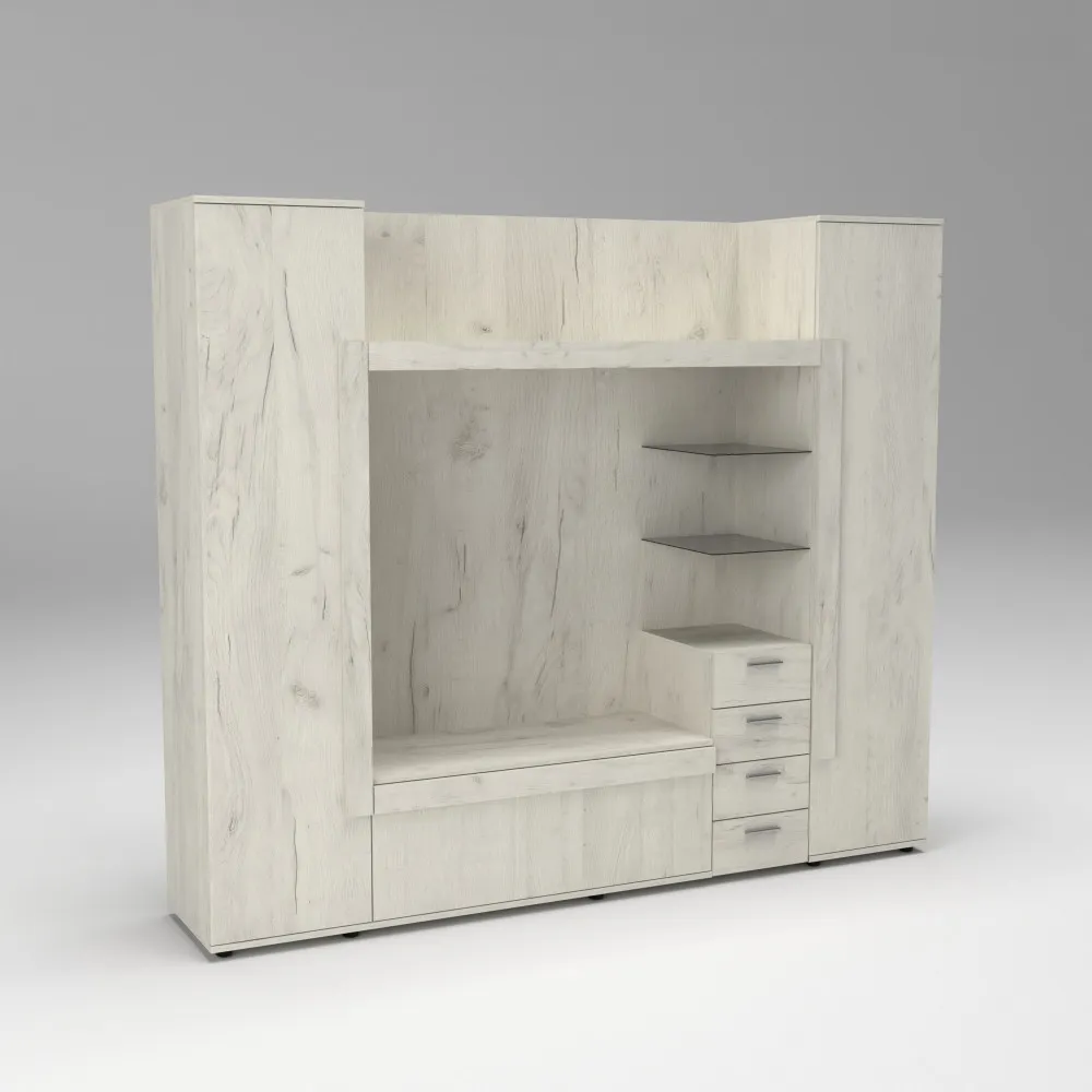 Стенка в гостиную под ТВ Exo-1, Дуб Крафт Белый, 2160х420х1850