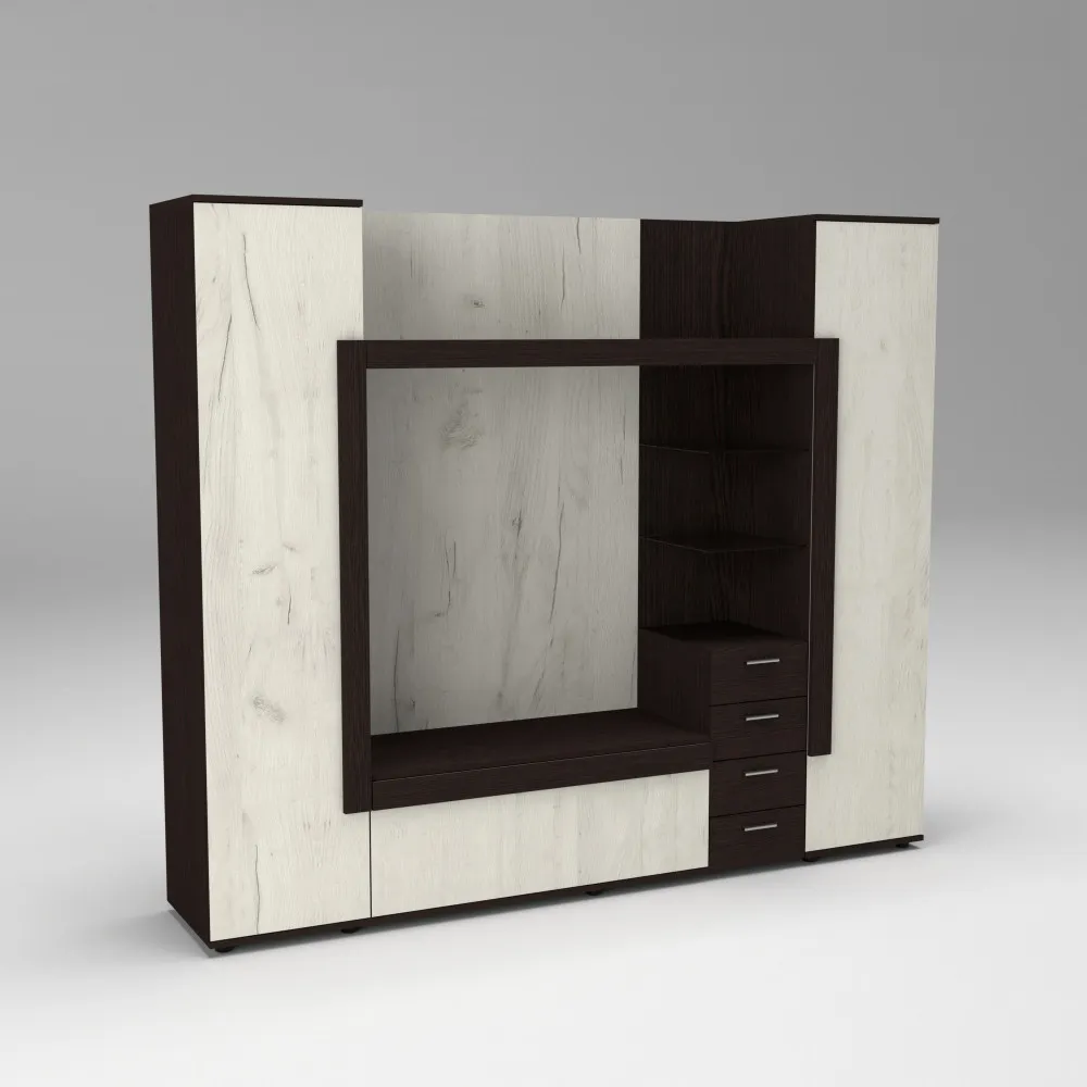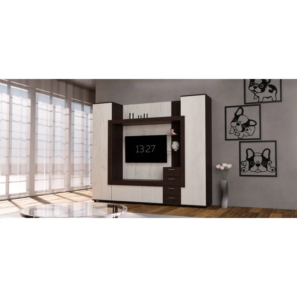 Характеристики Стенка в гостиную под ТВ Exo-1, Дуб Крафт Белый/Венге Магия, 2160х420х1850