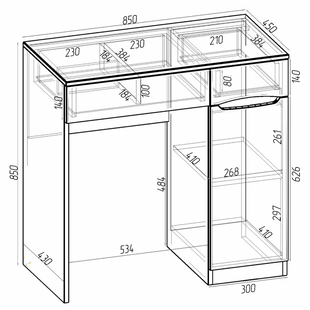 Характеристики Трюмо Дельта, Дуб Крафт Белый, 850/450/850