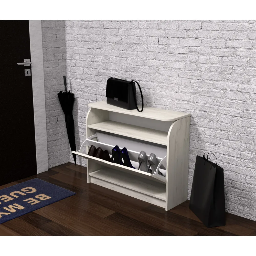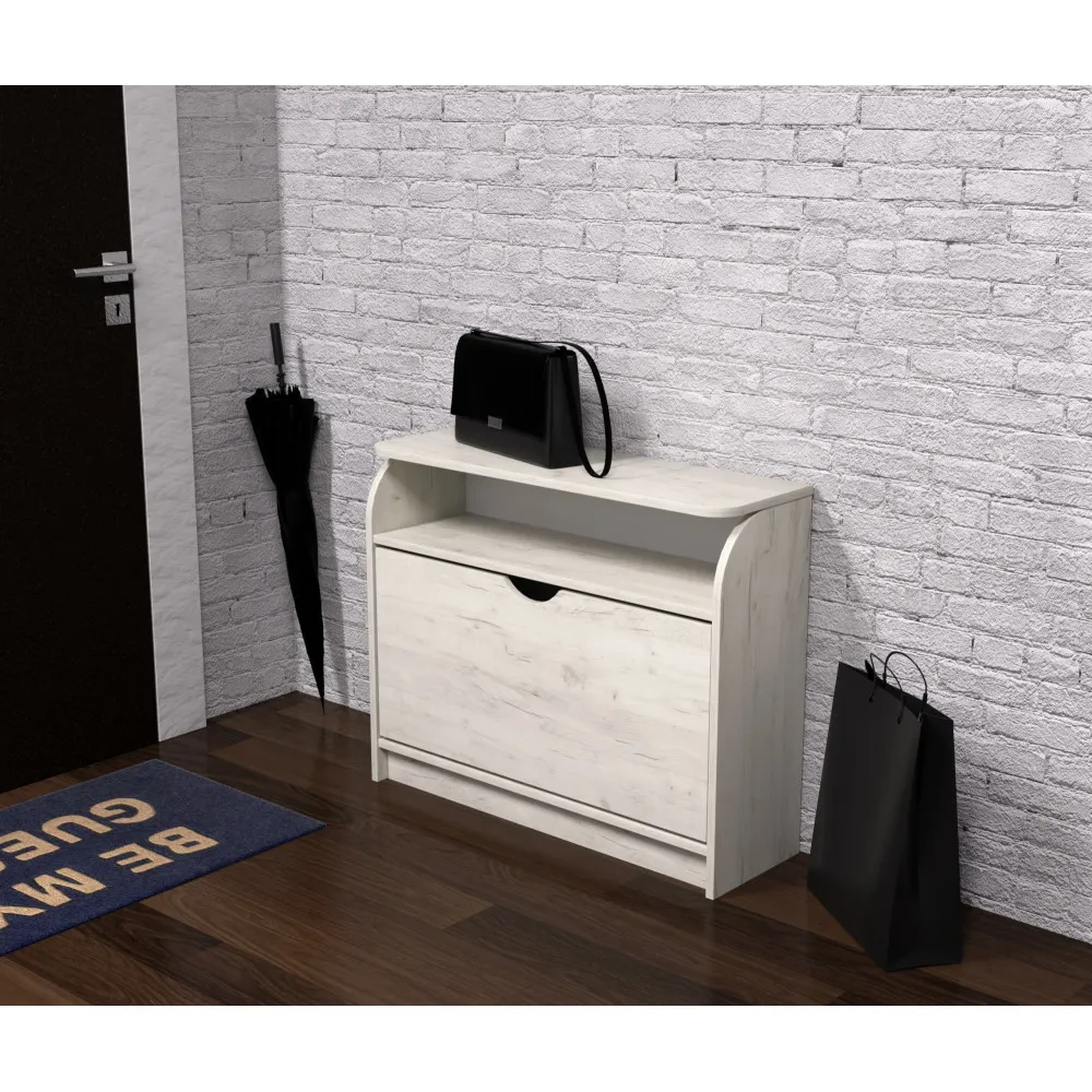 Тумба для обуви №3, Дуб Крафт Белый, 800/250/650