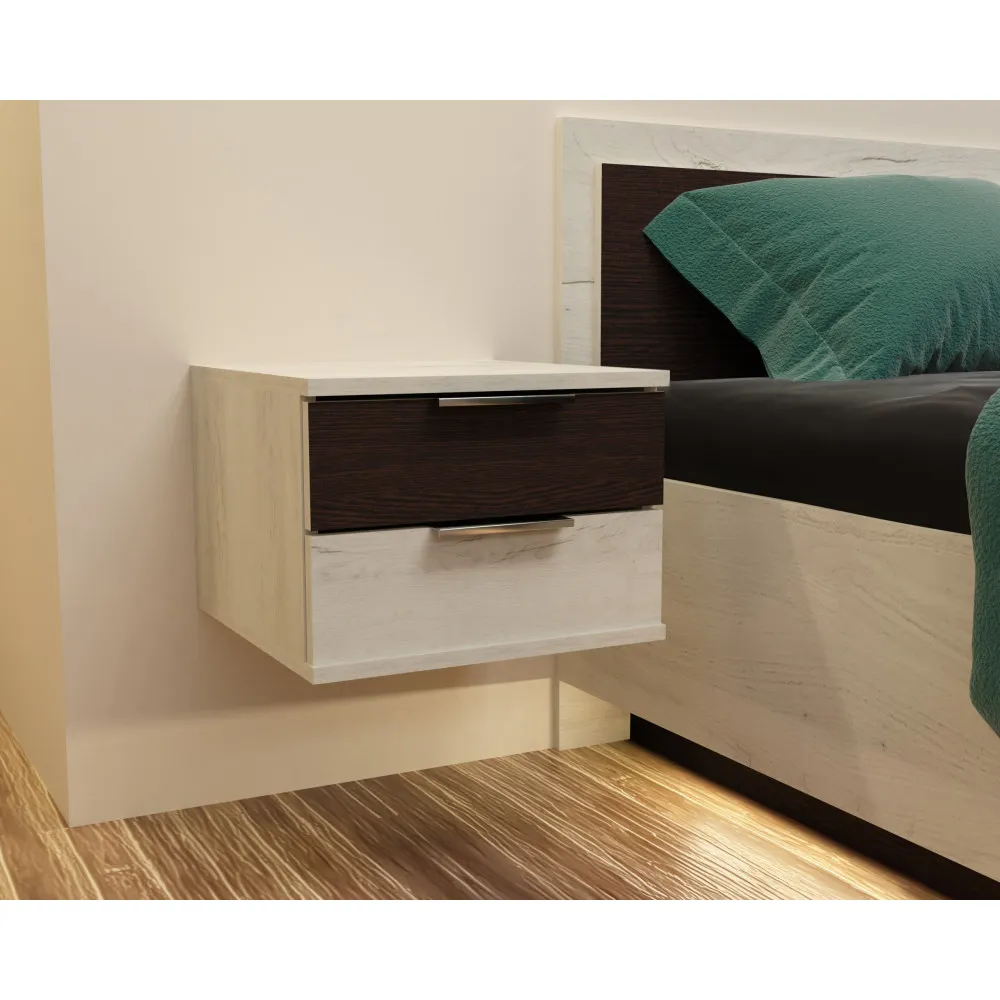 Тумба навесная прикроватная Кристалл, Дуб Крафт Белый/Венге Магия, 400/400/290