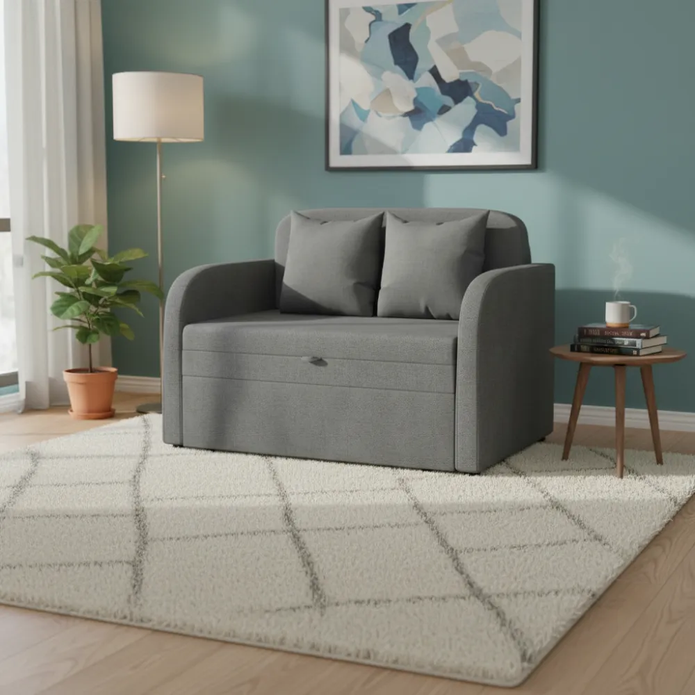 Функціональність: Зручний механізм трансформації дозволяє легко перетворити диван на повноцінне спальне місце розміром 110x190 см для комфортного відпочинку.
