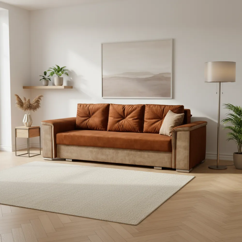 Функціональність: Зручний механізм трансформації дозволяє легко перетворити диван на повноцінне спальне місце розміром 150x190 см для комфортного відпочинку.