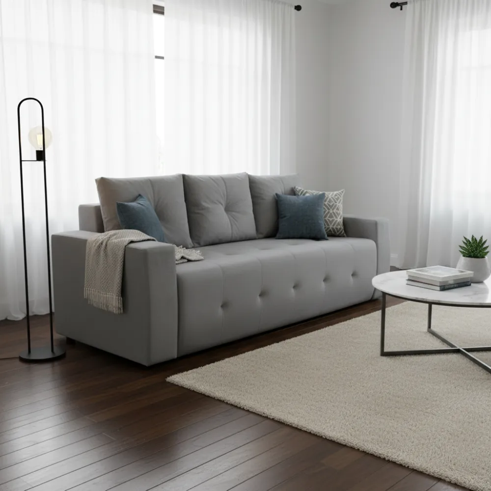 Функціональність: Зручний механізм трансформації дозволяє легко перетворити диван на повноцінне спальне місце розміром 190x160 см для комфортного відпочинку.