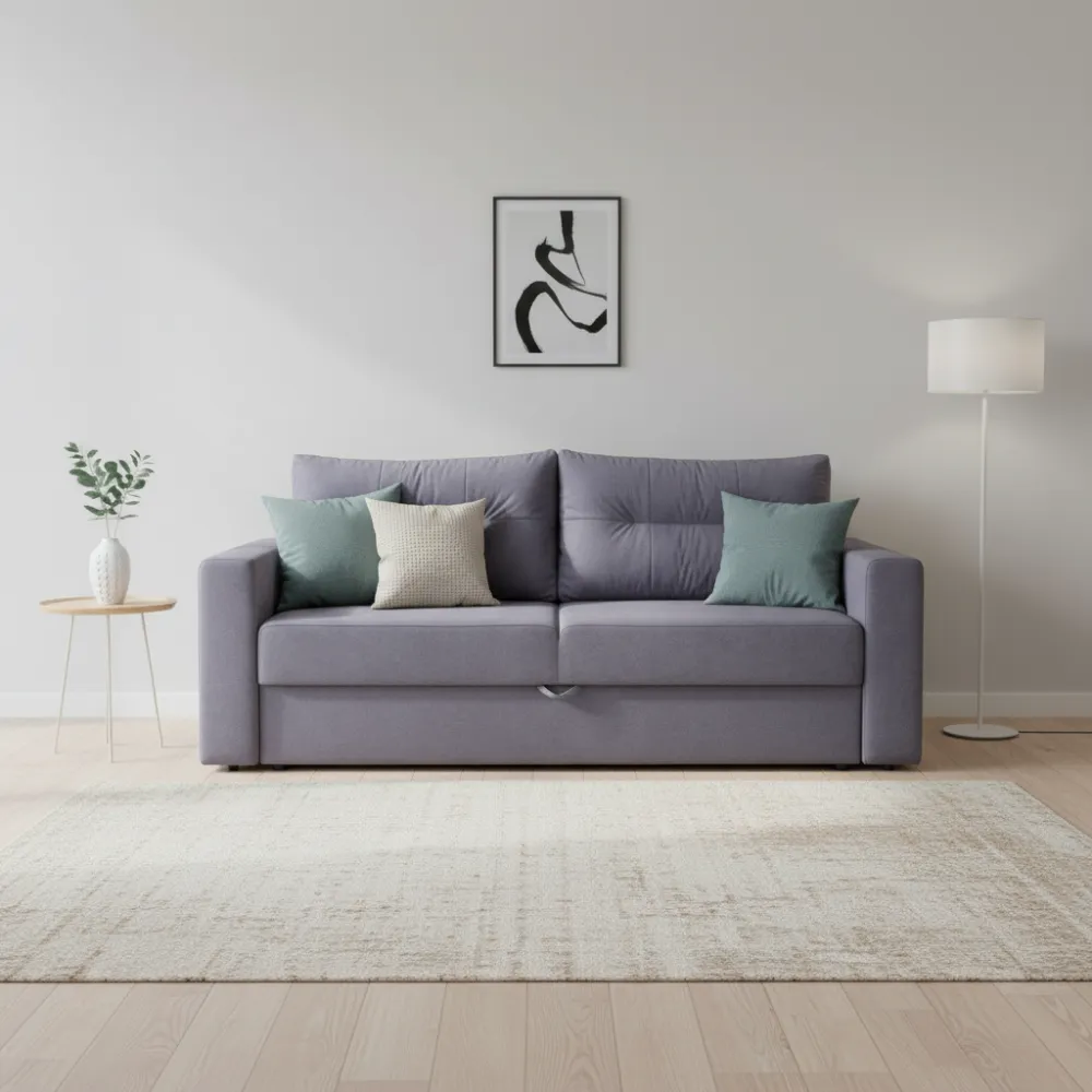 Функціональність: Зручний механізм трансформації дозволяє легко перетворити диван на повноцінне спальне місце розміром 150x190 см для комфортного відпочинку.