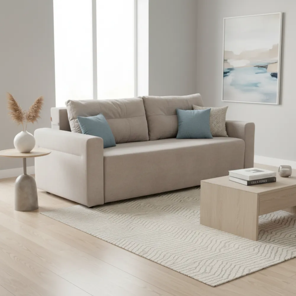 Функціональність: Зручний механізм трансформації дозволяє легко перетворити диван на повноцінне спальне місце розміром 150x190 см для комфортного відпочинку.