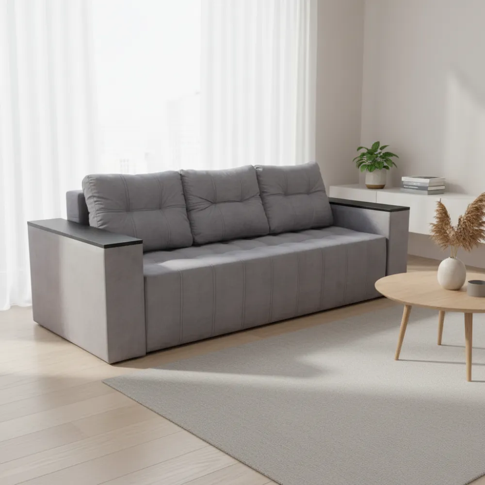Функціональність: Зручний механізм трансформації дозволяє легко перетворити диван на повноцінне спальне місце розміром 145x190 см для комфортного відпочинку.