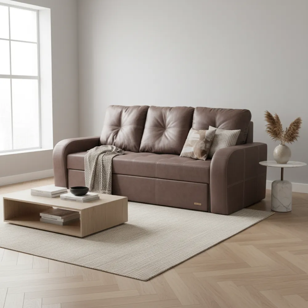 Функціональність: Зручний механізм трансформації дозволяє легко перетворити диван на повноцінне спальне місце розміром 130x190 см для комфортного відпочинку.
