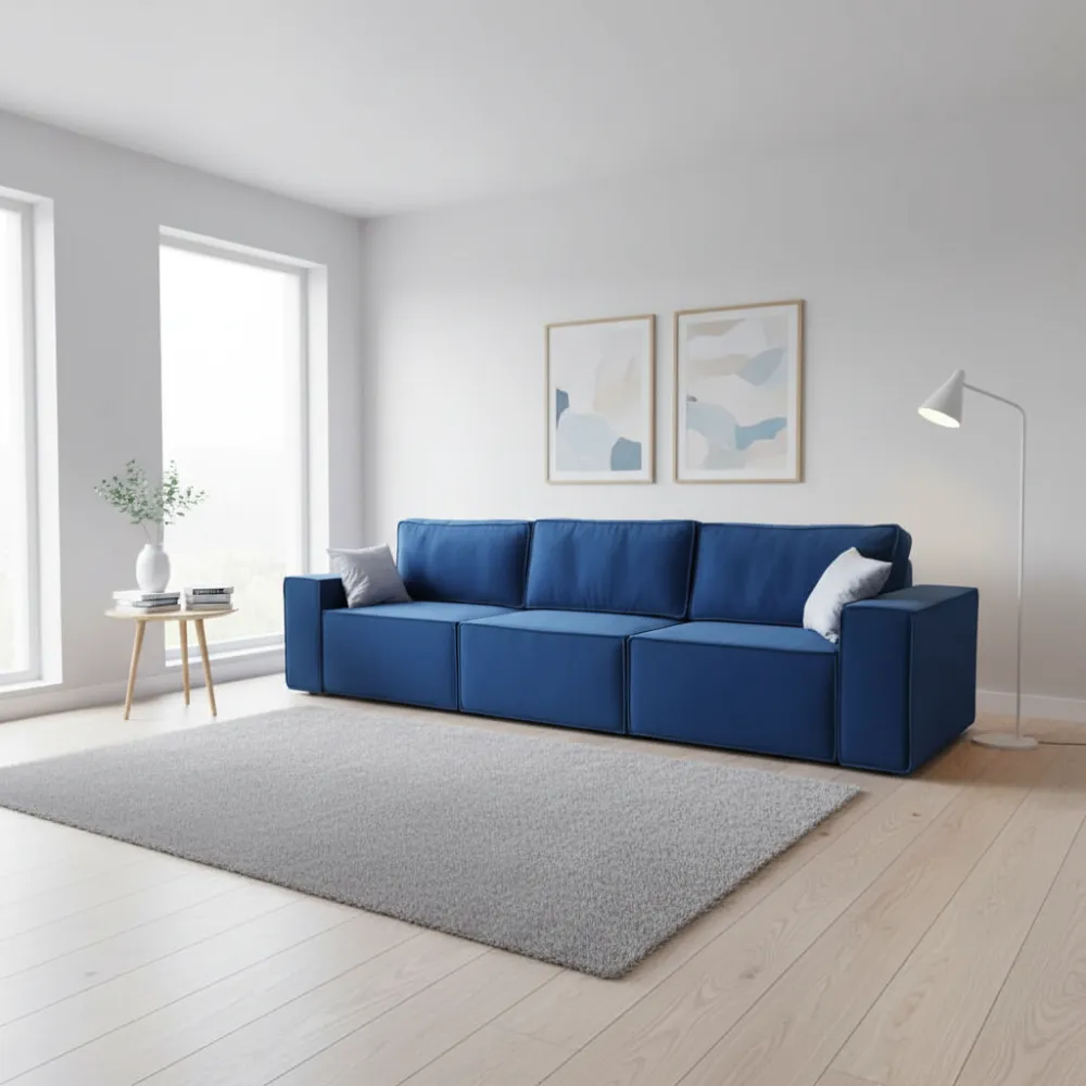 Матеріал оббивки: Тканина. Оббивка приємна на дотик і стійка до зношування, що забезпечує довговічність та легкість догляду. Колір виконання – сині – підкреслює естетичність моделі.