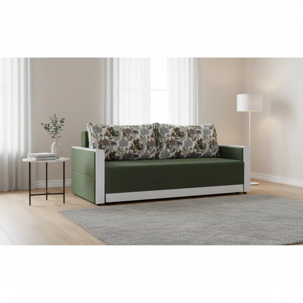 Функціональність: Зручний механізм трансформації дозволяє легко перетворити диван на повноцінне спальне місце розміром 150x190 см для комфортного відпочинку.