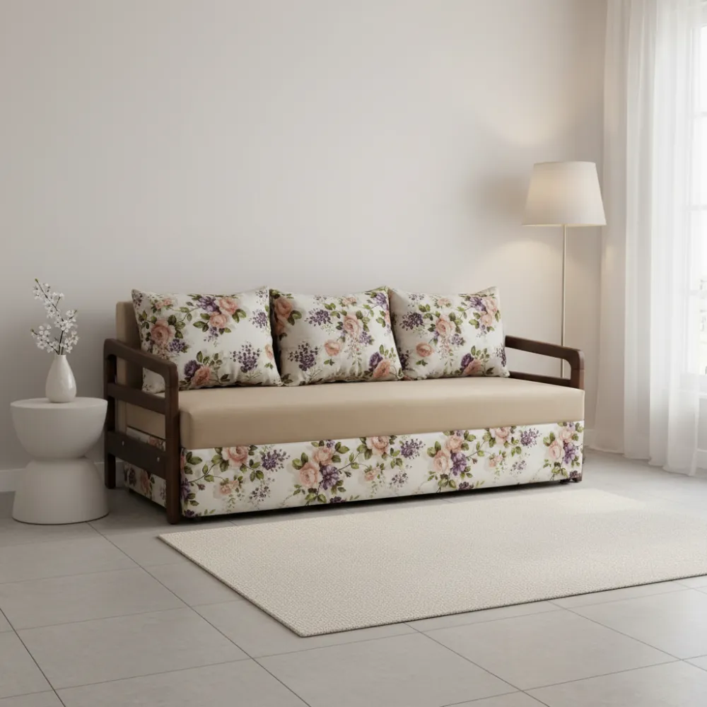 Матеріал оббивки: Тканина. Оббивка приємна на дотик і стійка до зношування, що забезпечує довговічність та легкість догляду. Колір виконання – квіти – підкреслює естетичність моделі.