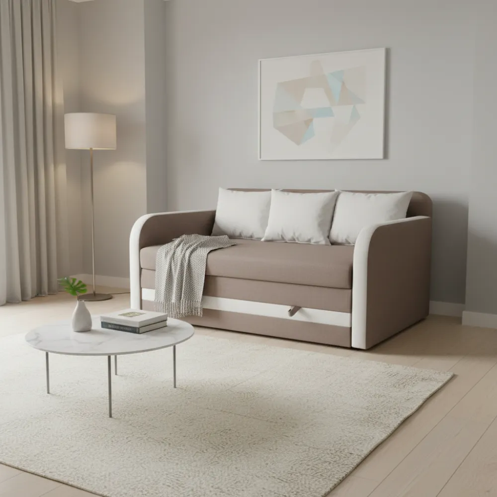 Функціональність: Зручний механізм трансформації дозволяє легко перетворити диван на повноцінне спальне місце розміром 120x200 см для комфортного відпочинку.
