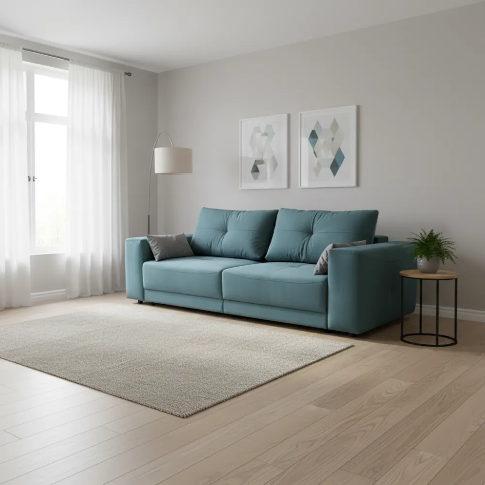 Функціональність: Зручний механізм трансформації дозволяє легко перетворити диван на повноцінне спальне місце розміром 160x195 см для комфортного відпочинку.
