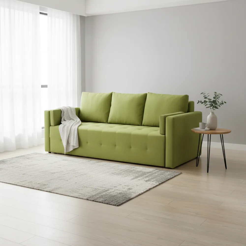 Функціональність: Зручний механізм трансформації дозволяє легко перетворити диван на повноцінне спальне місце розміром 195х145 см для комфортного відпочинку.