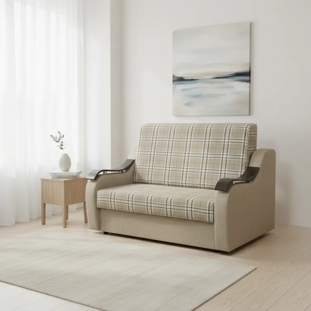 Функціональність: Зручний механізм трансформації дозволяє легко перетворити диван на повноцінне спальне місце розміром 120x185 см для комфортного відпочинку.