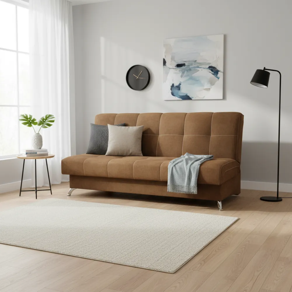 Функціональність: Зручний механізм трансформації дозволяє легко перетворити диван на повноцінне спальне місце розміром 120x195 см для комфортного відпочинку.